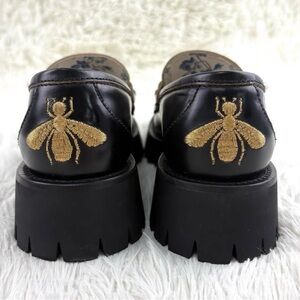 Gucci Black Leather Loafers with Gold Accents