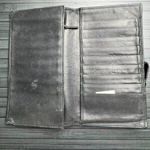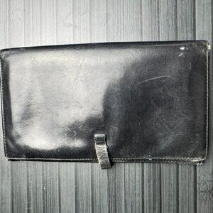 Classic Gucci long organizer crafted in black leather. Features multiple compartments for cards, cash, and essentials in a slim, practical design.