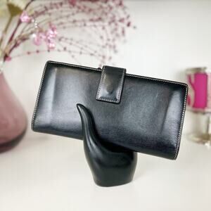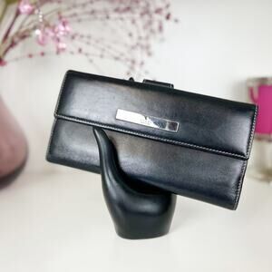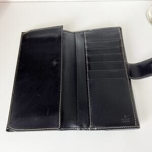 Gucci Authentic Black Leather Long Wallet with Logo Plate. Simple yet elegant design. Excellent storage and numerous compartments. Only Wallet being sold, no dust cover or box.