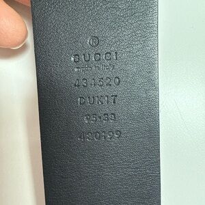 The item shown is a Gucci Bee Print Calfskin Leather Belt. Here's a summary of its features: