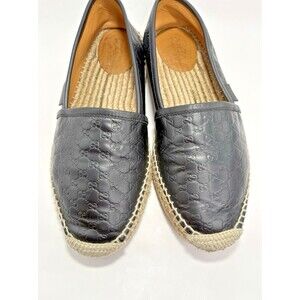 Gucci Black Leather Microguccissima Signature Espadrilles GG Monogram Sz EU 37.5