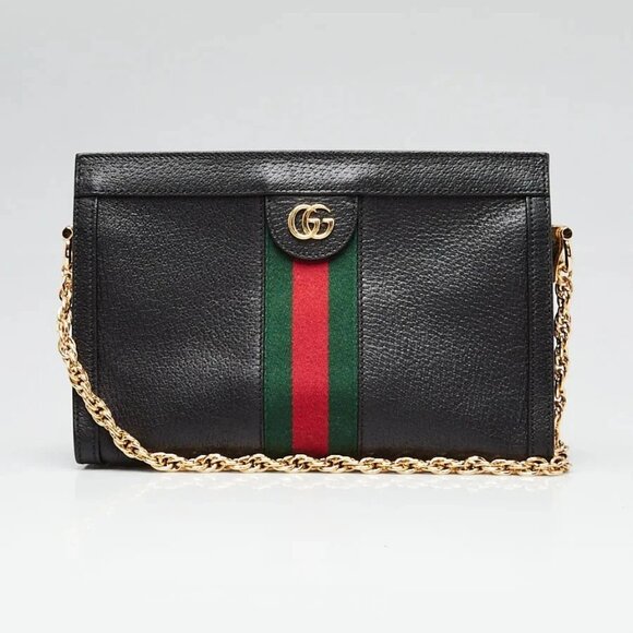 Gucci Black Leather Ophidia Small Shoulder Bag