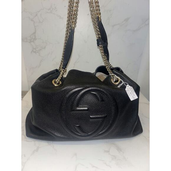 Features: Gold-tone hardware, spacious interior, iconic Gucci logo