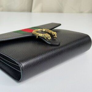 Gucci Black Leather Small Dionysus Crossbody Bag with Iconic Green & Red Webbing