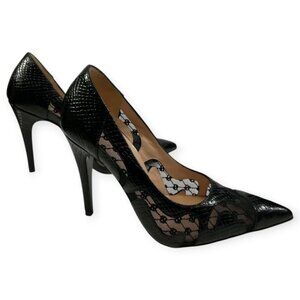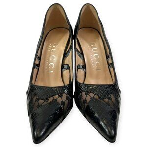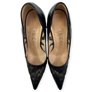 Gucci Black Leather Snake Embossed Pointed Toe Heels