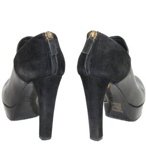 Gucci Black Leather Suede Accent Platform Stiletto Ankle Boot, Size 36.5