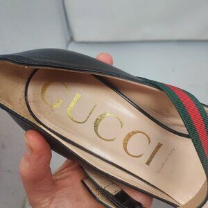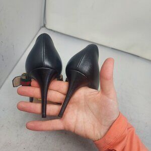 Gucci Black Leather Sylvie Mary Jane Web Pump Shoe