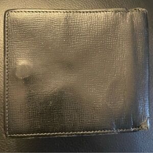 Sleek and stylish black leather Gucci wallet with a metallic accent. Perfect for everyday use.
