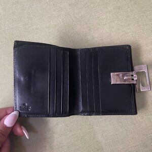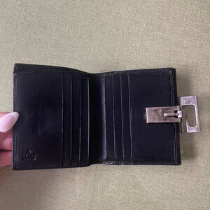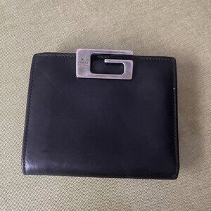 Gucci Black Leather Wallet with Silver G Clasp – Vintage Authentic