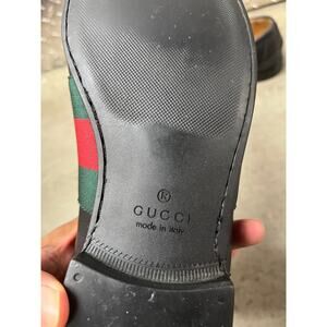 Gucci - Black Leather Web Slip On Loafers / 7.5 M