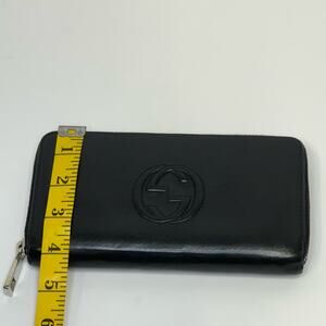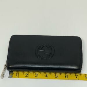 Gucci Black Leather Zip-Around Wallet with GG Logo and Gold Hardware