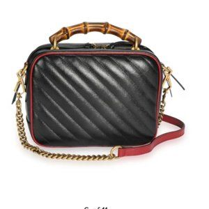 Gucci Black Matelassé Leather GG Marmont Bamboo Small Bag NEW WITH TAGS