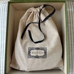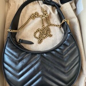 Elegant black mini bag with signature gold GG logo. Perfect for any occasion. Stylish and compact design.