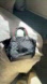 Stylish Gucci bag with iconic monogram pattern. Features black fabric and green and red straps.