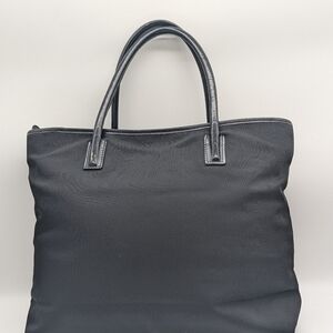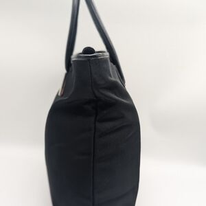 Classic and functional Gucci tote in black nylon with leather handles and trim. Features silver-tone hardware, a zip closure, and a spacious interior. Some wear on the leather trim and handles, as shown in photos. Clean interior with Gucci tag intact.