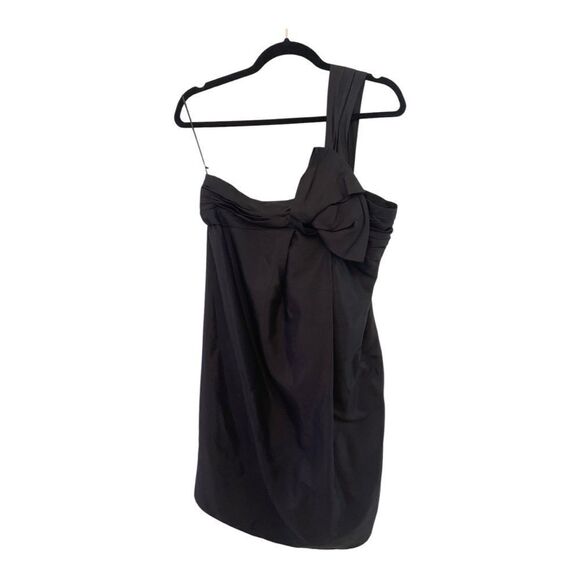 This stunning authentic Gucci black one-shoulder cocktail dress is a timeless and elegant piece. Made in Italy from luxurious silk, it features a dramatic asymmetrical bow detail and a structured yet flowing silhouette, making it perfect for special occasions, formal events, or cocktail parties. The dress is labeled size 42 (IT), which typically translates to a US 6-8.