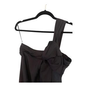 This stunning authentic Gucci black one-shoulder cocktail dress is a timeless and elegant piece. Made in Italy from luxurious silk, it features a dramatic asymmetrical bow detail and a structured yet flowing silhouette, making it perfect for special occasions, formal events, or cocktail parties. The dress is labeled size 42 (IT), which typically translates to a US 6-8.