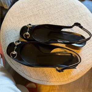 Gucci Black Patent Leather Slingback Heels