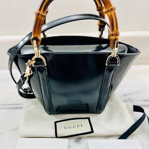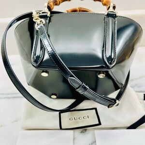 Gucci Black Patent Leather in Bag with Bamboo Handle