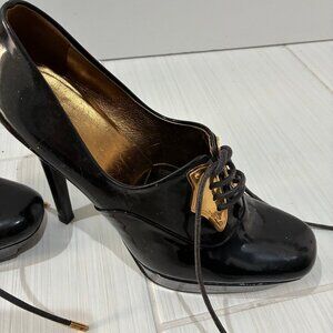 Gucci Black Patent Leather pumps with gold accesnts - size9.5 B
