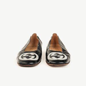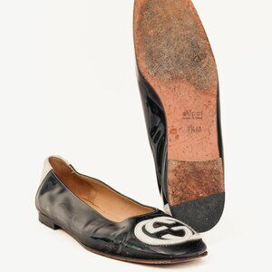 Gucci Black Patent-Leather GG-Logo Ballerina Flats