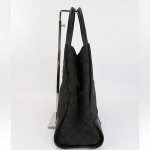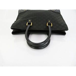Chic Gucci handbag in black with signature pattern. Gold hardware and leather accents enhance its elegance.