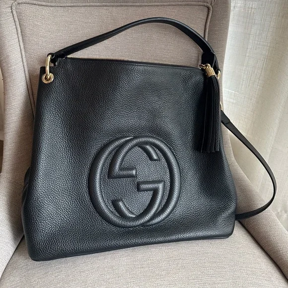 Gucci Black Pebbled Calfskin SoHo Hobo Bag Large