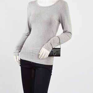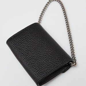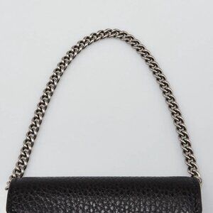 Gucci Black Pebbled Leather Dionysus Mini Card Holder On Chain Wallet
