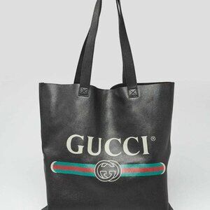 Gucci Black Pebbled Leather Logo Printed Tote Bag