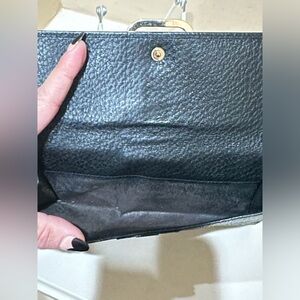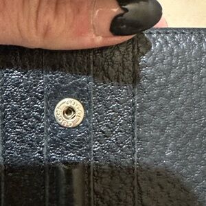 Nice used Condition Gucci Long Wallet with snaps on front and back. It has some coin residue in the front pocket from use otherwise is clean inside and out. I have pictured the serials and made in as well. The hardware is gold and has some tarnishing from normal use but is still pretty vibrant. Both snaps work as they should. Thanks for looking!