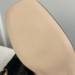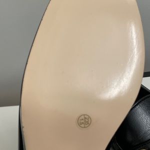 Elegant black platform loafers. Features signature gold hardware. Perfect for a chic look.