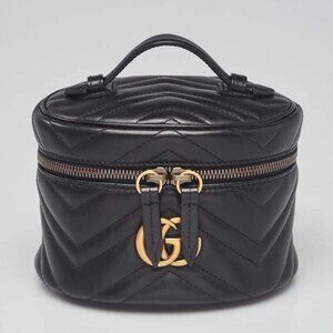 Gucci Black Quilted Leather Marmont Mini Round Backpack Bag