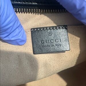 Elegant Gucci shoulder bag in black quilted leather. Features signature GG logo and gold chain strap. Very good condition, like new interior, minor scuffs at corners.