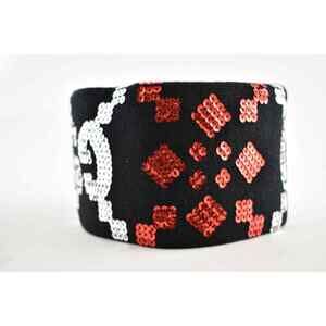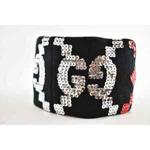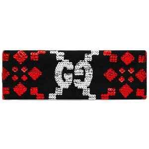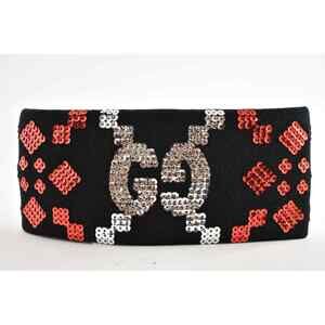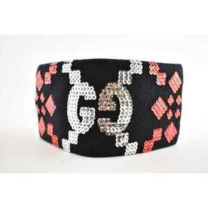 Gucci Black Sequin Silver Red GG Logo Wool Stretchy Headband Hair Small 56cm