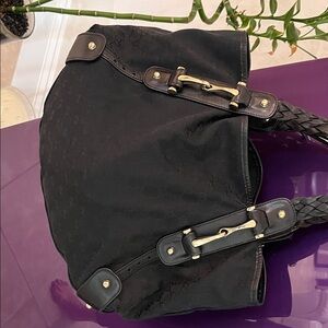 Chic black vintage shoulder bag with braided handles. Stylish and versatile for any outfit. Great condition