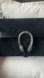 Luxurious black shoulder bag with intricate silver chain detail. Features iconic Gucci emblem. Perfect for elevating any look.