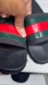 Stylish Gucci slides featuring iconic red and green stripes on a black base. Perfect for casual wear.