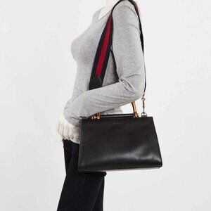 Gucci Black Smooth Calfskin Leather Nymphaea Medium Top Handle Bag