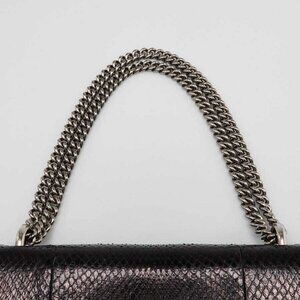 The Dionysus shoulder bag is a newer style from Gucci that has already become a classic. This particular Dionysus features a structured silhouette but is made from snakeskin. The textured tiger head closure is a reference to the Greek god Dionysus. The sliding chain strap can be worn on the shoulder or carried by hand.