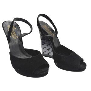 Gucci Black Studded Wedge Slingback Heels - size 6.5