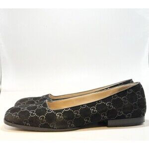 Gucci Black Suede Flats/Loafers GG Monogram Square Toe Vintage Y2K Sz 36 6