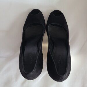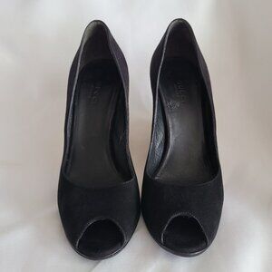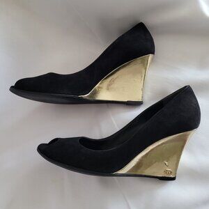 Gucci Black Suede Gold Wedge Heel SZ 7