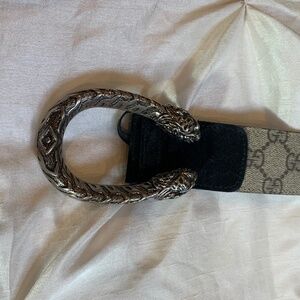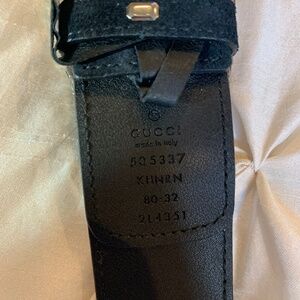 Gucci Black Suede/Leather Dionysus Logo Belt sz 80(32)