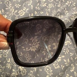 Elegant Gucci sunglasses with black frames and small gold Gucci logo . Generic case only (new)