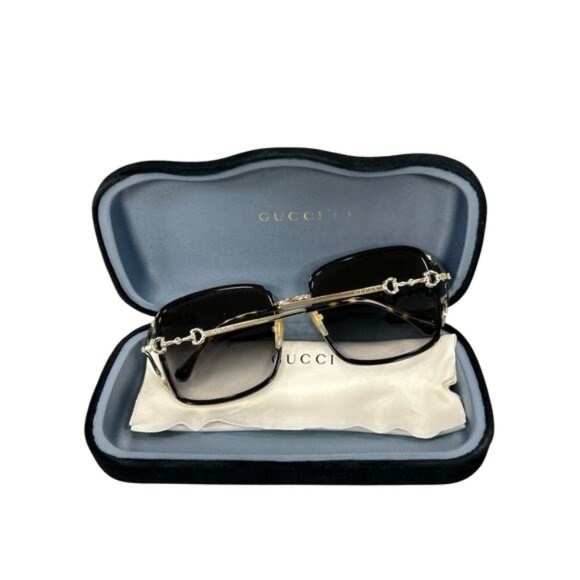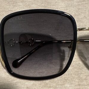 Elegant Gucci sunglasses with gold details. Comes with a sleek case and pouch.