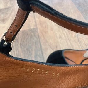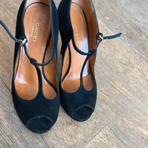 Chic Gucci heels with a stylish T-strap design. Perfect for elevating any outfit.