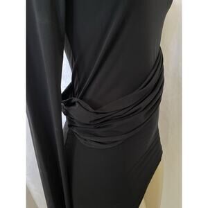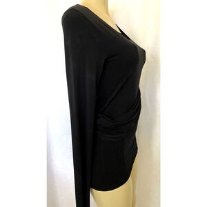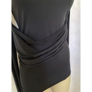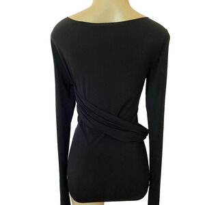 Gucci Black Top Blouse Long Sleeve Round Neck Draped Waist Stretch Fitte…