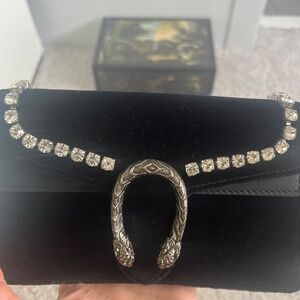 Gucci Black Velvet and Crystal Dionysus Super Mini Chain Bag With Box pre- owned