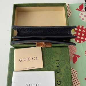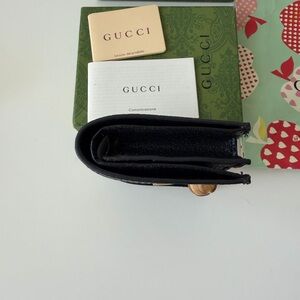 Gucci Black Wallet with Gold Logo and Gift Bag