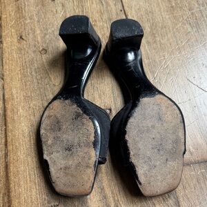 Chic black mules by Gucci. Sleek design with subtle elegance. Ideal for versatile styling.